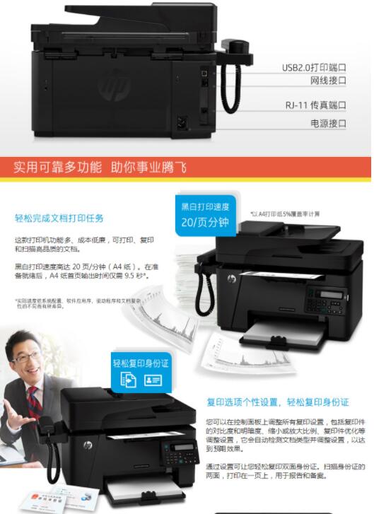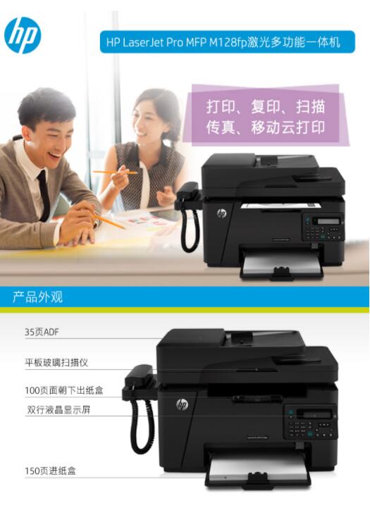 惠普(HP)128fn/1213fn/128fw1219nf 黑白多功能激光打印復印掃描傳真一體機 128fp USB/打印/復印/掃描/傳真 自營