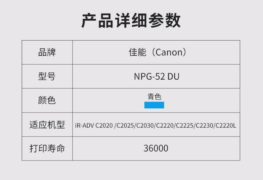 佳能(Canon)NPG-52DU CYAN原裝青色感光鼓(適用于iR-ADV C2020/C2025/C2030/C2220/C2225/C2230/C2220L) 自營